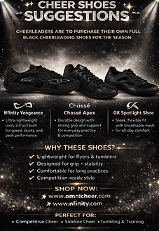 *Cheer shoes purchased separately - Must be all black, including sole*